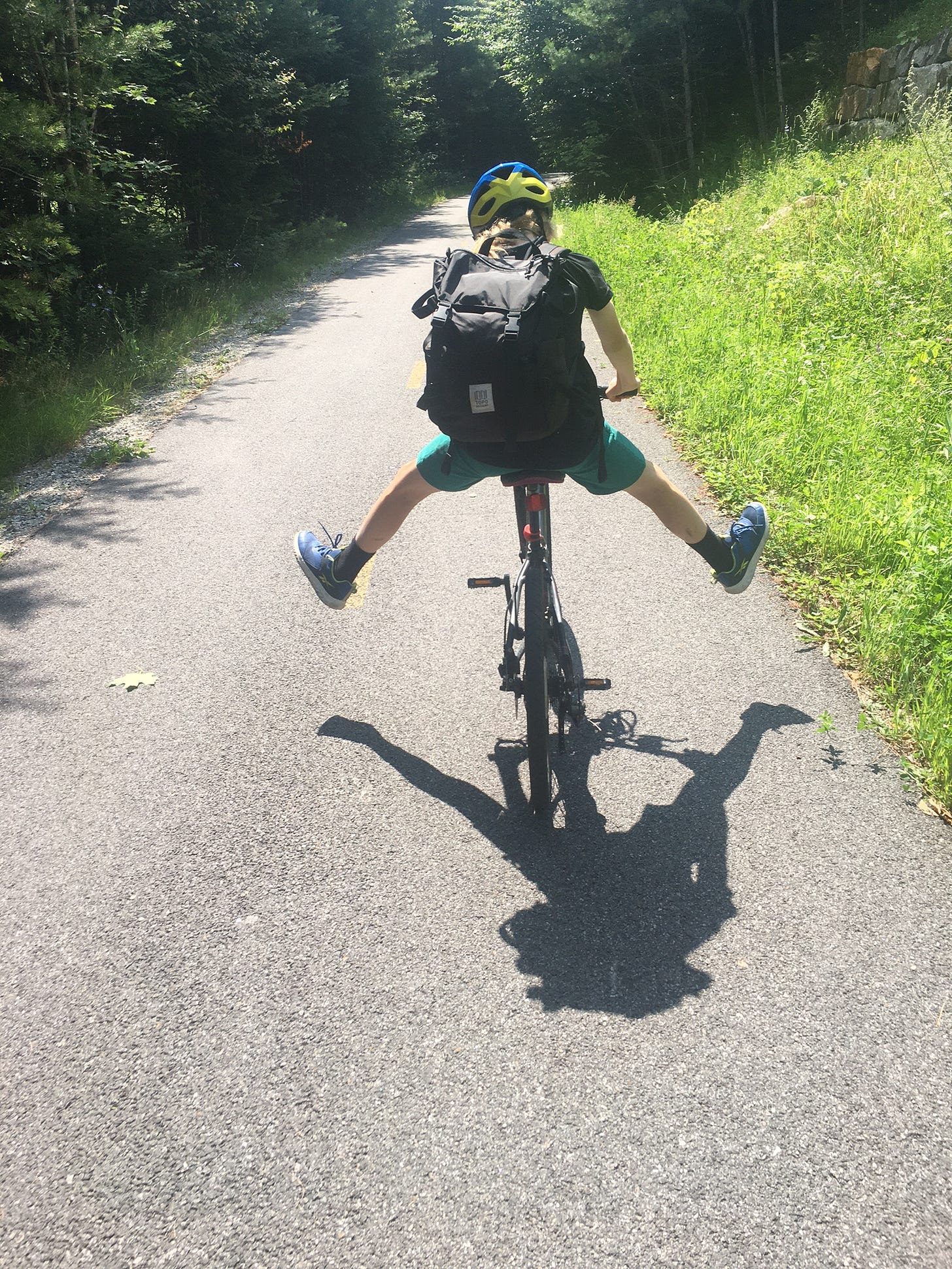 Great piece! I did a similar outing with my son Noah last year. This year I did two separate outings in the Montérégie, which is quite accessible without any public transport link. The hard part is getting on the Jacques-Cartier bridge and then finding the Route Verte on the other side of Longueuil. Chambly and St-Jean-sur-Richelieu are easily accessible within a day's ride (a day trip to Chambly is quite feasible), and Granby on the edge of the Estrie is also a reasonable day ride. With my daughter we passed through the Mont St-Bruno park to get some real nature.